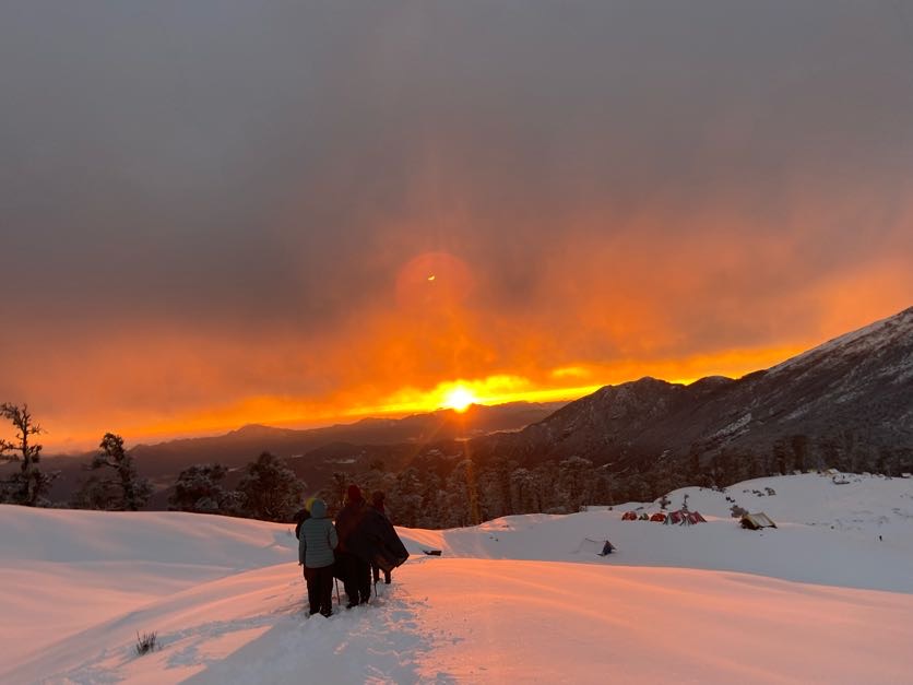 Upon reaching the summit, you’ll feel an overwhelming sense of accomplishment standing amidst the mighty Himalayas. After soaking in the view and taking memorable pictures, descend back to Brahmatal Lake to camp for the night.